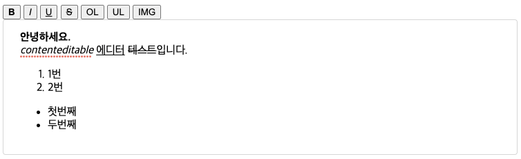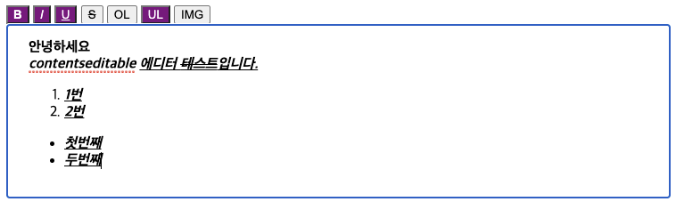 이번 포스팅은 HTML에 있는 contenteditable을 이용해서 editor를 만들기입니다.