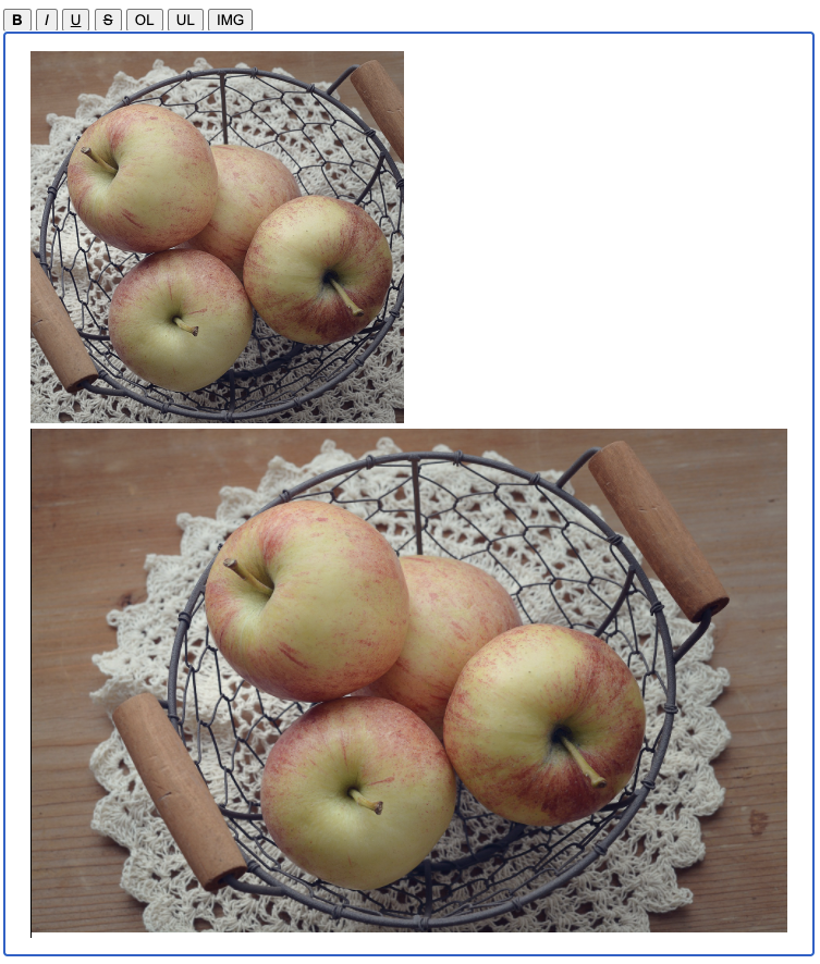 그러면 아래와 같이 작은 이미의 경우에는 해당 사진의 크기로 삽입이 되고 에디터보다 큰 사진의 경우에는 에디터에 맞게 삽입이됩니다.