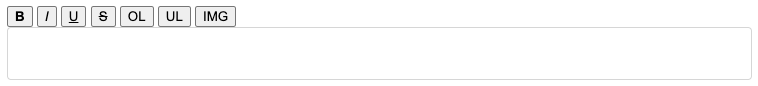 버튼까지 추가를 했으니 버튼들에 이벤트를 등록해보겠습니다. 아래와 같이 스크립트를 추가해줍니다. 그러면 굵기, 기울임, 밑줄, 취소선, 숫자 목록, 기호 목록이 적용되는 것을 확인할 수 있습니다.