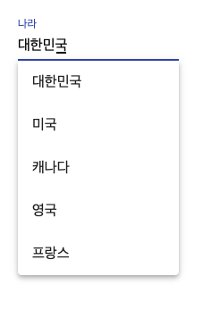 필터 기능을 추가하여 입력에 따라 자동 완성 선택 옵션이 변경되록 해보겠습니다.