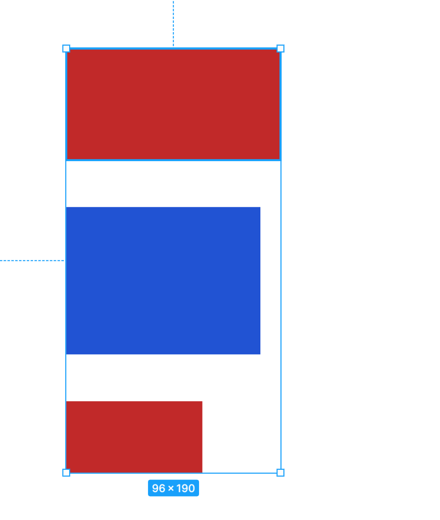 아래와 같이 빨간색 사각형 두개가 Autolayout으로 되어 있는 상태에서 파란색 사각형을 빨간색 사각형과 겹쳐지게 그냥 마우스로 드래그해서 옮길 경우