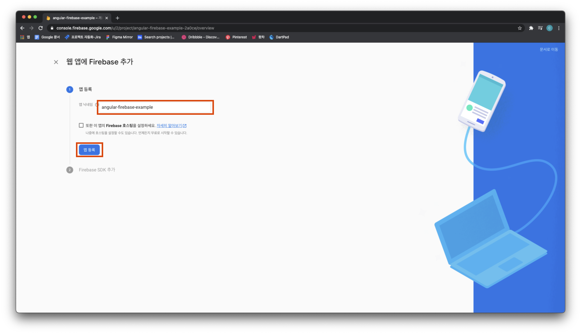 앱 닉네임을 입력하고 앱 등록을 눌러준 후,