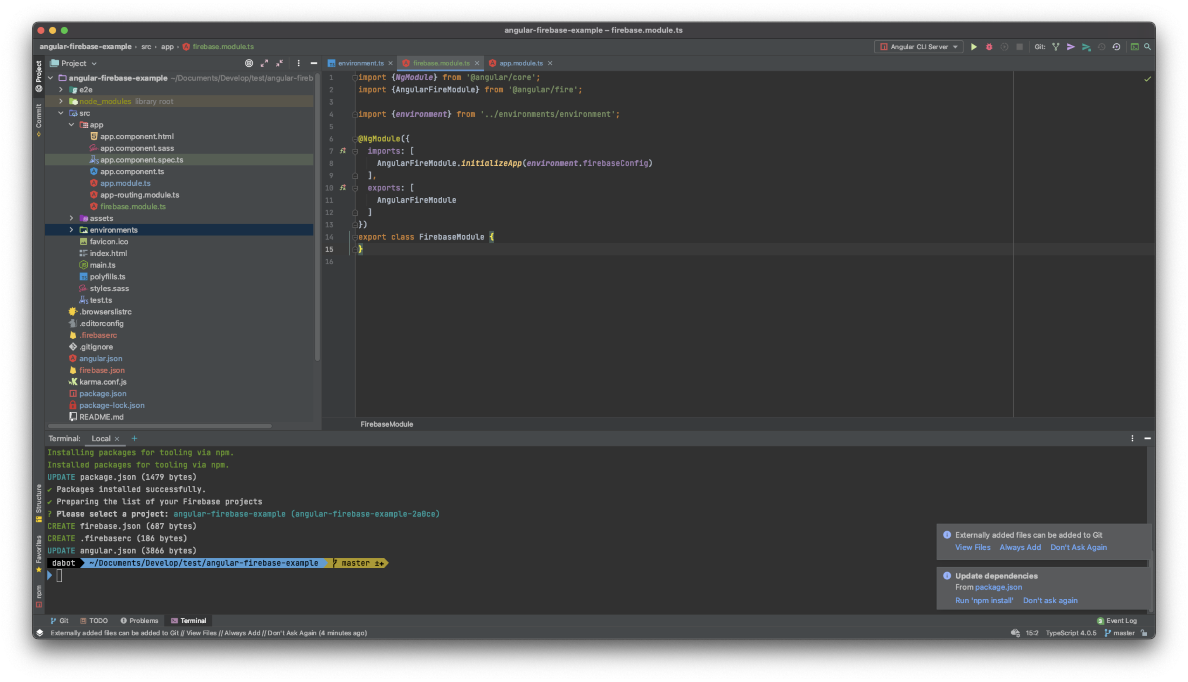 그런 다음 프로젝트에 Angularfire 라이브러리(GitHub 참고)를 추가해줍니다.