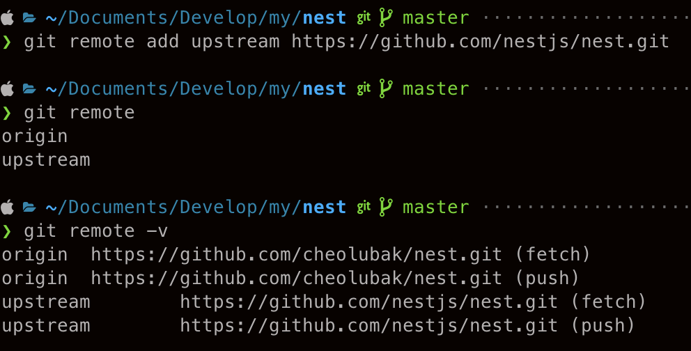 $ git remote add upstream https://github.com/nestjs/nest.git