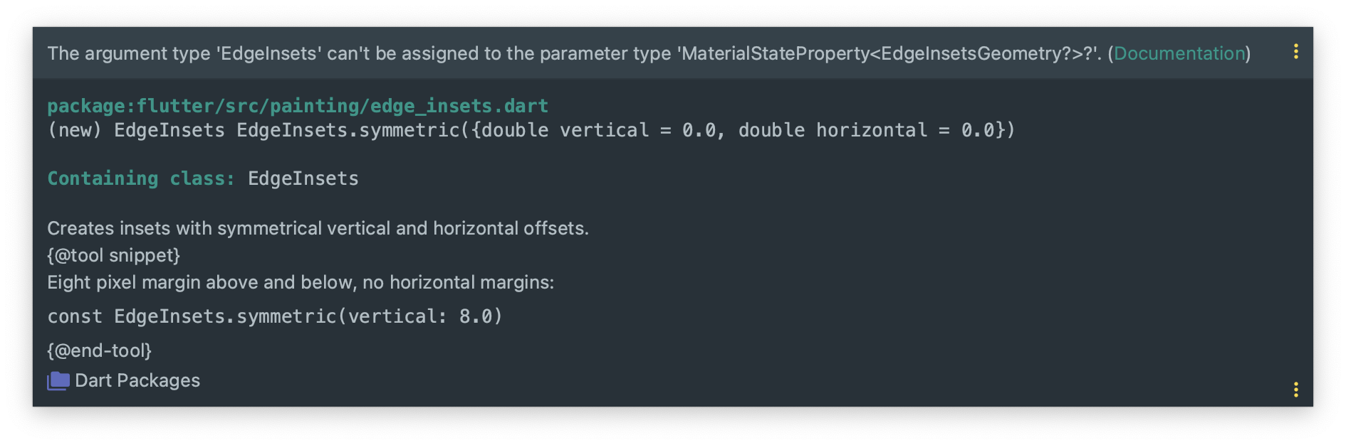 EdgeInsets가 MaterialStateProperty<EdgeInsetsGeometry?>?에 맞지 않다고 합니다.