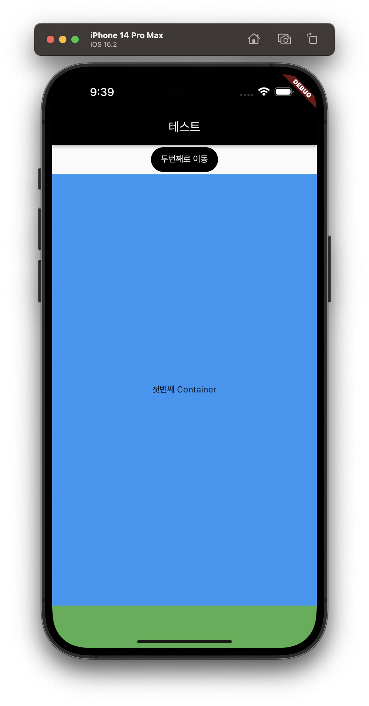 이제 버튼을 눌러보면 아래와 같이 두번째 Container로 이동하는 것을 볼수 있습니다.
